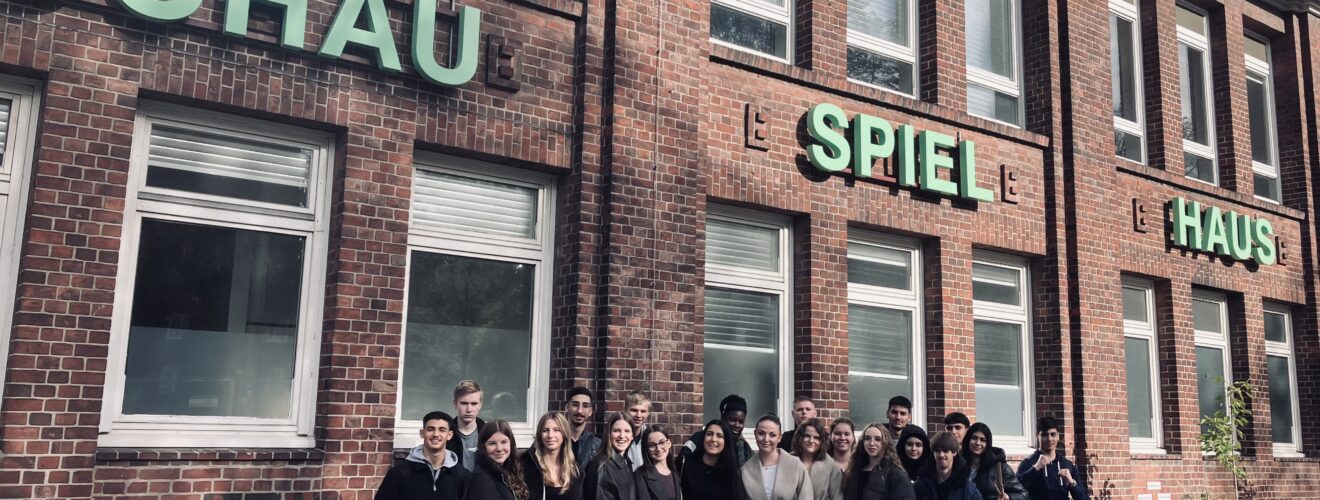 Sichtlich beeindruckt von dieser hochmodernen Inszenierung versammelte sich der Kurs zum Abschluss noch zu einem Gruppenfoto vor dem Jungen Schauspielhaus – ein schöner Moment, der diesen Theaterbesuch abrundete.